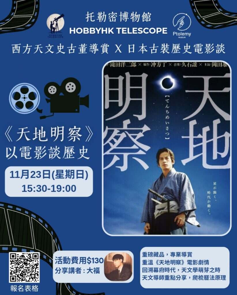 The event will feature a guided tour by a Ptolemy Museum guide sharing knowledge about antique artifacts and artifacts related to astronomical history. Participants will have the opportunity to observe antique telescopes, ancient star disks, rare books, and other valuable historical artifacts up close. After the screening, a HOBBYHK astronomy instructor will explain the film’s background and related information. Those who haven’t seen the film are also welcome to attend!