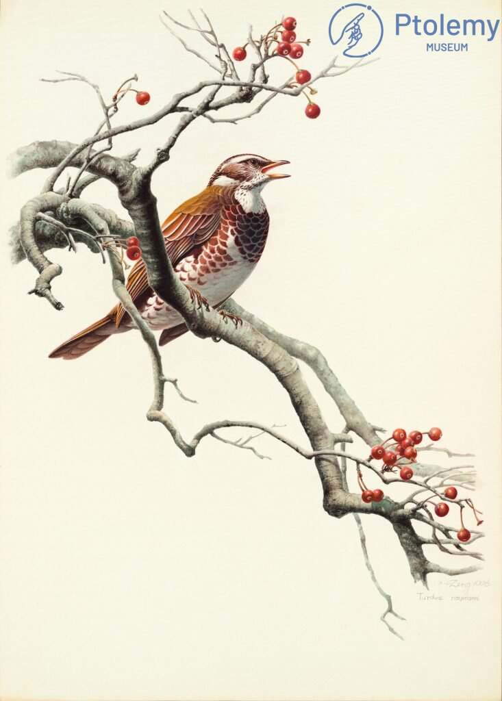 紅尾斑鶇 Turdus naumanni 紙本水彩水粉 1996 浙江自然博物院收藏