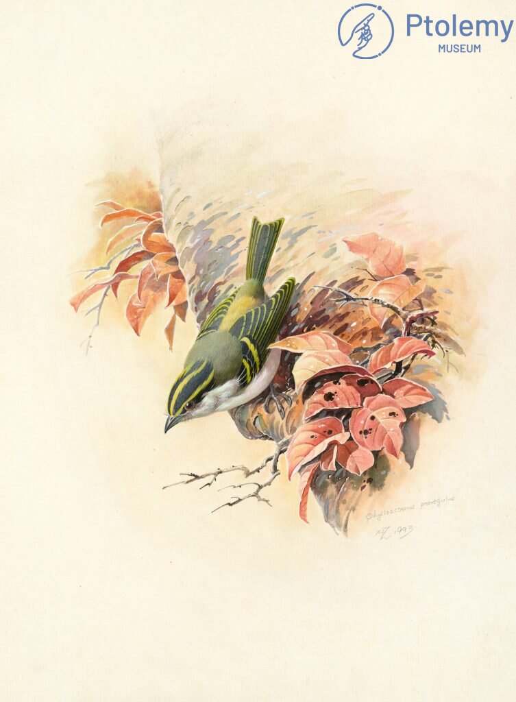 黃腰柳鶯 Phylloscopus proregulus 紙本水彩水粉 1993 浙江自然博物院收藏