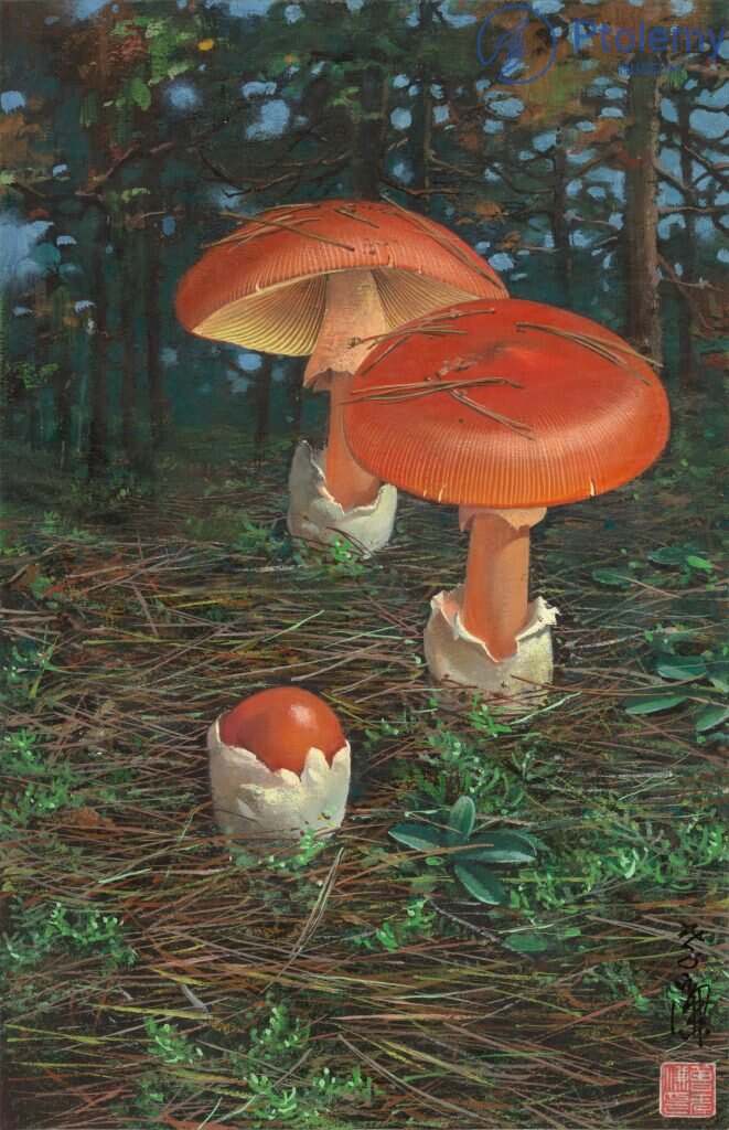 紅黃鵝膏菌 Amanita hemibapha (Berk. & Broome) Sacc. 紙本水粉 1980s 浙江自然博物院收藏