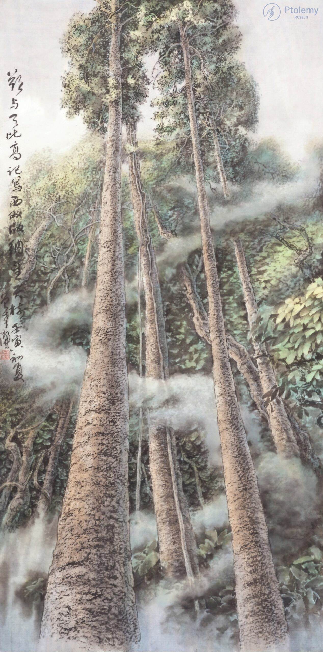 望天樹是版納植物園最有特色的物種之一,也是雲南熱帶雨林的標誌性物種,證明了我國存在熱帶雨林。2023年4月,中國科學院西雙版納熱帶植物園主辦「藝術邂逅科學.首屆博物畫展」,曾孝濂先生為此展覽特別創作國畫《望天樹》作為紀念。