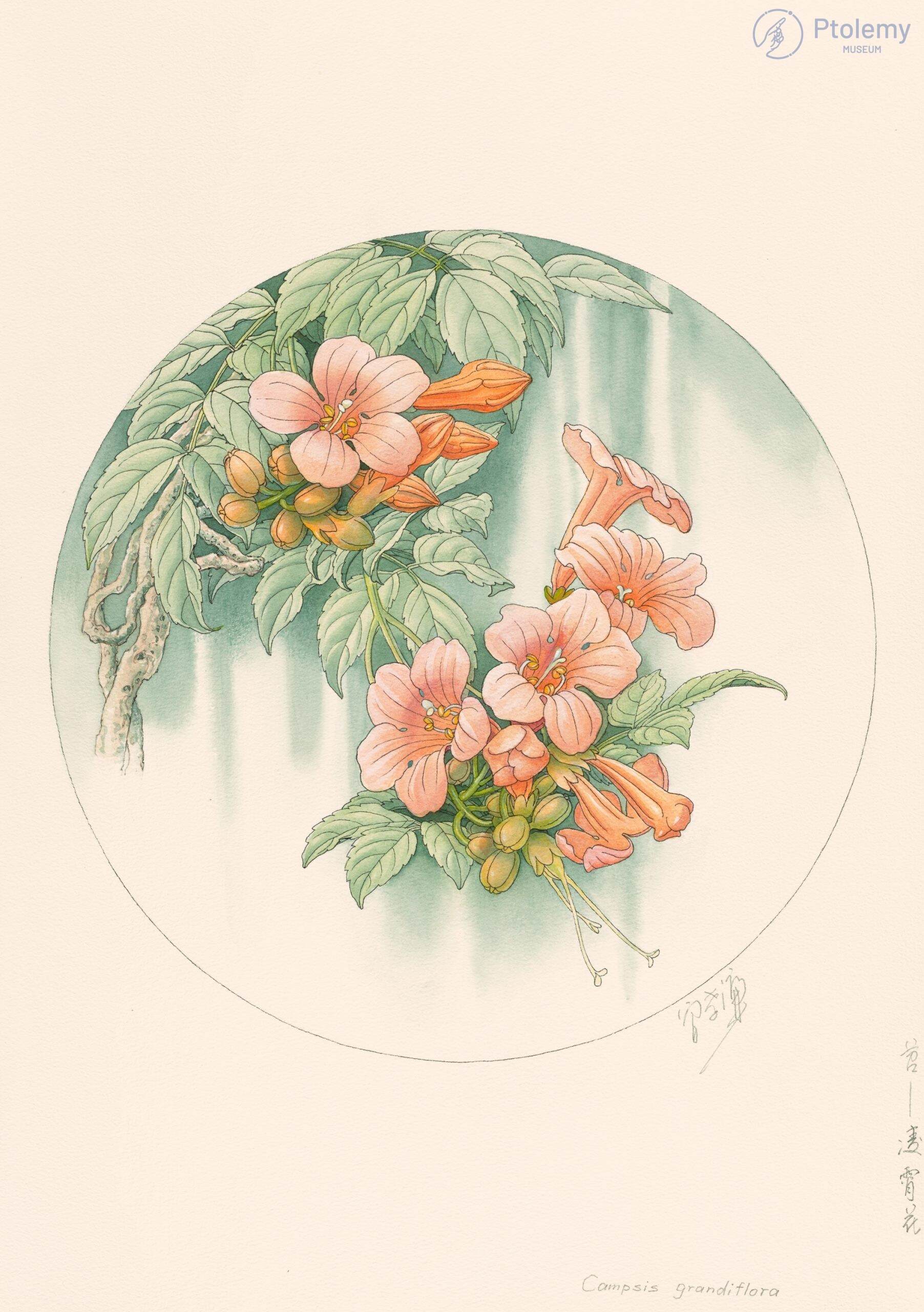凌霄 Campsis grandiflora 丙烯+國畫(複製品) 2022 浙江自然博物院提供