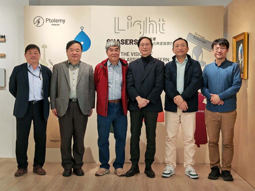 國際科學史研究院院士、國際科技史學會前主席、中國科學技術史學會前理事長劉鈍教授,清華大學深圳國際研究生院楊艦教授一行於11月28日蒞臨托勒密博物館葵芳展廳,參觀「追光者:西方古典望遠鏡的視界」特展。館長韓鵬與榮譽館長馮錦榮教授共同接待。